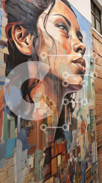 Intra Συλλεκτικό Ξύλινο Παζλ Plywood 4mm – Κομψό πορτρέτο μιας γυναίκας μπροστά από τον τοίχο γκράφιτι και το αστικό τοπίο Σε Ξύλινο Κουτί – Διαστάσεις Puzzle: 10×10 cm – 25 κομμάτια