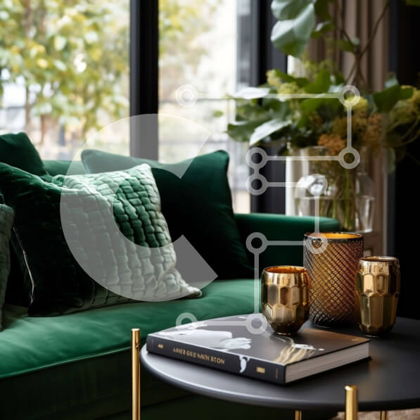 Intra Συλλεκτικό Ξύλινο Παζλ Plywood 4mm – Κομψό σαλόνι με πράσινο καναπέ και κομψές πινελιές Σε Ξύλινο Κουτί – Διαστάσεις Puzzle: 10×10 cm – 25 κομμάτια