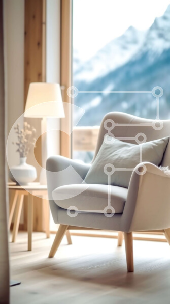 Intra Συλλεκτικό Ξύλινο Παζλ Plywood 4mm – Κομψό σαλόνι με λευκή δερμάτινη καρέκλα και ξύλινο τραπεζάκι σαλονιού Σε Ξύλινο Κουτί – Διαστάσεις Puzzle: 10×10 cm – 25 κομμάτια