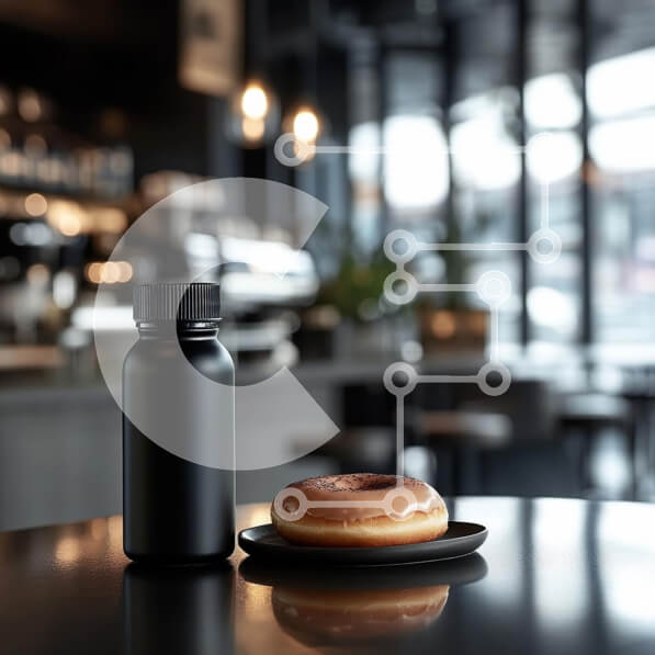 Intra Συλλεκτικό Ξύλινο Παζλ Plywood 4mm – Κομψό σκηνικό καφέ με μπουκάλι και ντόνατ Σε Ξύλινο Κουτί – Διαστάσεις: 10×10 cm – 25 κομμάτια