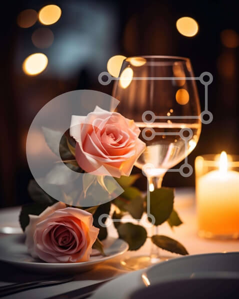 Intra Συλλεκτικό Ξύλινο Παζλ Plywood 4mm – Κομψό σκηνικό δείπνου με ποτήρια κρασιού και τριαντάφυλλα Σε Ξύλινο Κουτί – Διαστάσεις: 10×10 cm – 25 κομμάτια