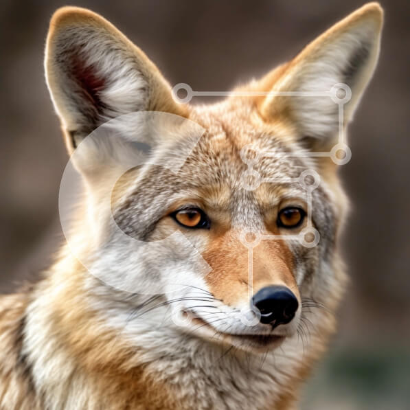 Intra Συλλεκτικό Ξύλινο Παζλ Plywood 4mm – Κοντινή εικόνα του προσώπου ενός κογιότ με καφέ γούνα και κίτρινα μάτια Σε Ξύλινο Κουτί – Διαστάσεις: 10×10 cm – 25 κομμάτια