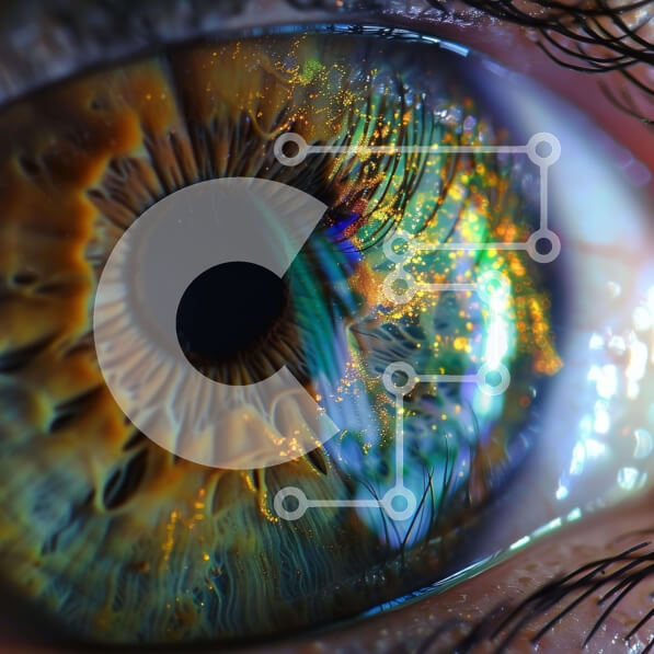 Intra Συλλεκτικό Ξύλινο Παζλ Plywood 4mm – Κοντινή εικόνα του πολύχρωμου ματιού ίριδας Σε Ξύλινο Κουτί – Διαστάσεις: 10×10 cm – 25 κομμάτια