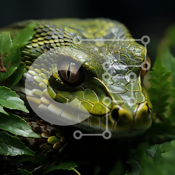 Intra Συλλεκτικό Ξύλινο Παζλ Plywood 4mm – Κοντινή λήψη του κεφαλιού ενός φιδιού που κοιτάζει απευθείας την κάμερα Σε Ξύλινο Κουτί – Διαστάσεις: 10×10 cm – 25 κομμάτια