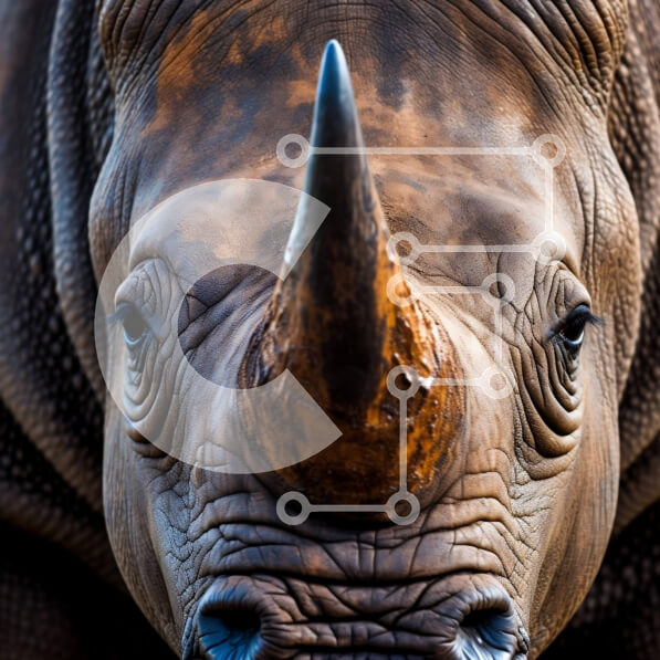 Intra Συλλεκτικό Ξύλινο Παζλ Plywood 4mm – Κοντινή φωτογραφία του προσώπου ενός ρινόκερου με μεγάλο κέρατο και καφέ γούνα Σε Ξύλινο Κουτί – Διαστάσεις: 10×10 cm – 25 κομμάτια