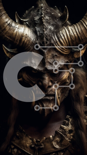 Intra Συλλεκτικό Ξύλινο Παζλ Plywood 4mm – Κοντινή φωτογραφία ενός ατόμου που φορά ένα κερασφόρο κράνος και πανοπλία Σε Ξύλινο Κουτί – Διαστάσεις Puzzle: 10×10 cm – 25 κομμάτια