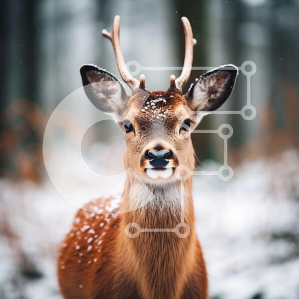 Intra Συλλεκτικό Ξύλινο Παζλ Plywood 4mm – Κοντινή όψη του προσώπου ενός ελαφιού με ελαφοκέρατα Σε Ξύλινο Κουτί – Διαστάσεις: 10×10 cm – 25 κομμάτια
