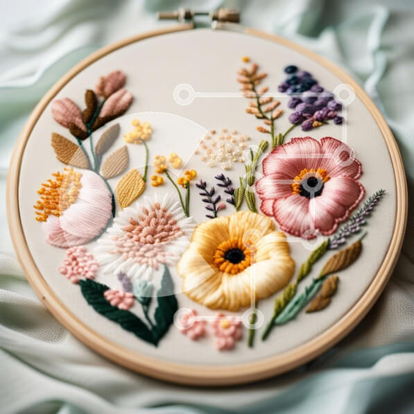 Intra Συλλεκτικό Ξύλινο Παζλ Plywood 4mm – Κοντινή όψη του πολύχρωμου κεντημένου λουλουδιού σχεδίου Σε Ξύλινο Κουτί – Διαστάσεις Puzzle: 10×10 cm – 25 κομμάτια