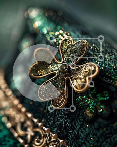 Intra Συλλεκτικό Ξύλινο Παζλ Plywood 4mm – Κοντινό πλάνο περίτεχνα διακοσμημένου πράσινου πορτοφολιού με χρυσές και ασημένιες πινελιές Σε Ξύλινο Κουτί – Διαστάσεις Puzzle: 10×10 cm – 25 κομμάτια
