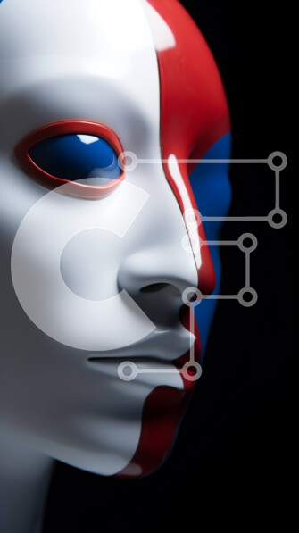 Intra Συλλεκτικό Ξύλινο Παζλ Plywood 4mm – Κοντινό πλάνο του προσώπου του μανεκέν με τα χρώματα της γαλλικής σημαίας Σε Ξύλινο Κουτί – Διαστάσεις Puzzle: 10×10 cm – 25 κομμάτια