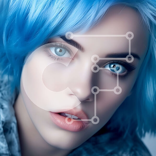 Intra Συλλεκτικό Ξύλινο Παζλ Plywood 4mm – Κοντινό πλάνο πορτρέτο ενός ατόμου με μπλε μαλλιά και μπλε μάτια Σε Ξύλινο Κουτί – Διαστάσεις Puzzle: 10×10 cm – 25 κομμάτια