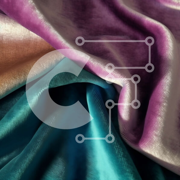 Intra Συλλεκτικό Ξύλινο Παζλ Plywood 4mm – Κοντινό πλάνο πολυτελούς βελούδινης κουρτίνας με μοτίβο Paisley σε αποχρώσεις του μωβ και του μπλε Σε Ξύλινο Κουτί – Διαστάσεις Puzzle: 10×10 cm – 25 κομμάτια