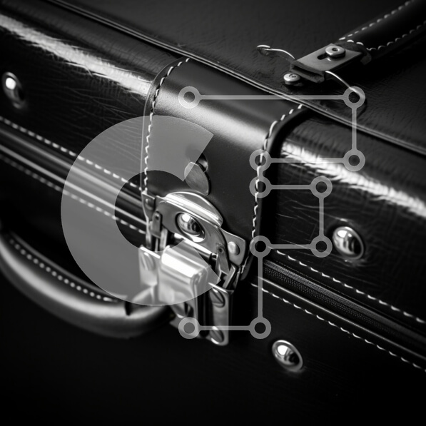 Intra Συλλεκτικό Ξύλινο Παζλ Plywood 4mm – Κοντινό πλάνο μιας μαύρης δερμάτινης βαλίτσας Σε Ξύλινο Κουτί – Διαστάσεις: 10×10 cm – 25 κομμάτια