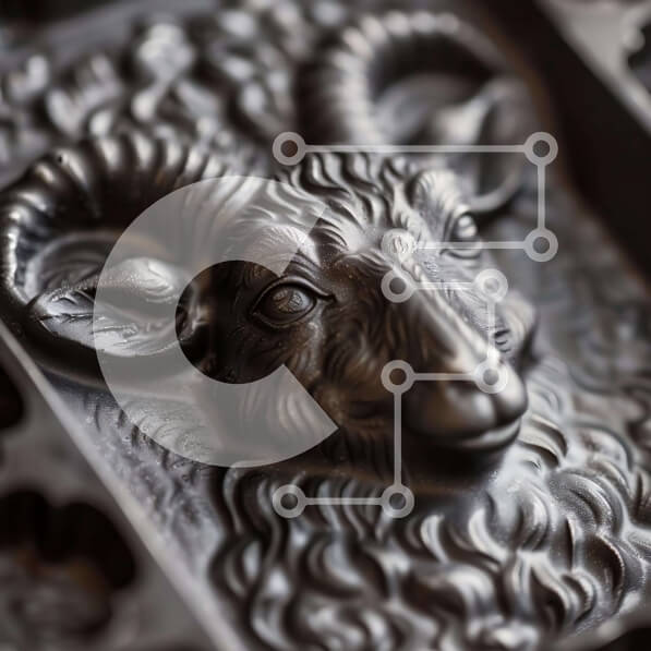 Intra Συλλεκτικό Ξύλινο Παζλ Plywood 4mm – Κοντινό πλάνο περίπλοκα γλυπτό μαύρο κεφάλι κατσίκας Σε Ξύλινο Κουτί – Διαστάσεις: 10×10 cm – 25 κομμάτια