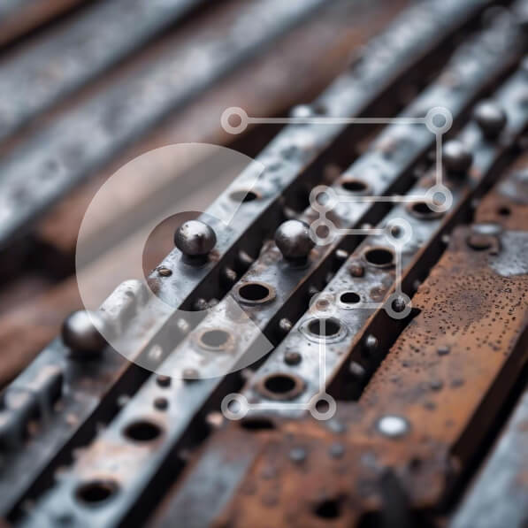 Intra Συλλεκτικό Ξύλινο Παζλ Plywood 4mm – Κοντινό πλάνο από σκουριασμένες μεταλλικές ράβδους και τρύπες Σε Ξύλινο Κουτί – Διαστάσεις: 10×10 cm – 25 κομμάτια