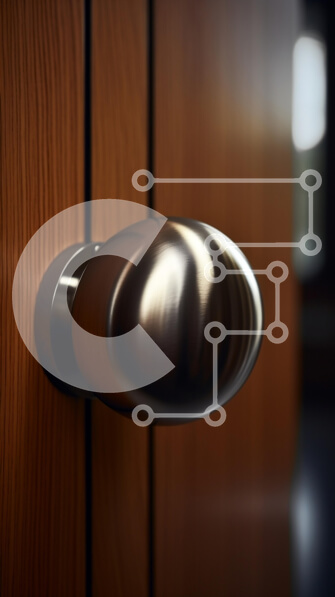 Intra Συλλεκτικό Ξύλινο Παζλ Plywood 4mm – Κοντινό πλάνο ενός σύγχρονου πόμολο πόρτας σε ξύλινο ντουλάπι Σε Ξύλινο Κουτί – Διαστάσεις Puzzle: 10×10 cm – 25 κομμάτια