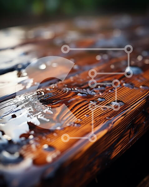 Intra Συλλεκτικό Ξύλινο Παζλ Plywood 4mm – Κοντινό πλάνο του ξύλινου τραπεζιού με σταγονίδια νερού Σε Ξύλινο Κουτί – Διαστάσεις Puzzle: 10×10 cm – 25 κομμάτια