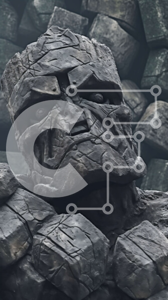 Intra Συλλεκτικό Ξύλινο Παζλ Plywood 4mm – Κοντινό πλάνο περίπλοκο πέτρινο άγαλμα με απειλητική έκφραση και μυθικά γλυπτά Σε Ξύλινο Κουτί – Διαστάσεις Puzzle: 10×10 cm – 25 κομμάτια
