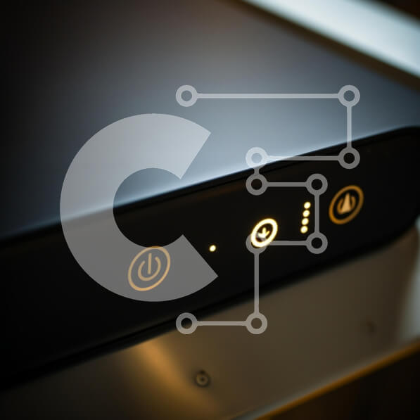 Intra Συλλεκτικό Ξύλινο Παζλ Plywood 4mm – Κοντινό πλάνο ενός σύγχρονου πίνακα ελέγχου ηλεκτρονικής συσκευής Σε Ξύλινο Κουτί – Διαστάσεις Puzzle: 10×10 cm – 25 κομμάτια