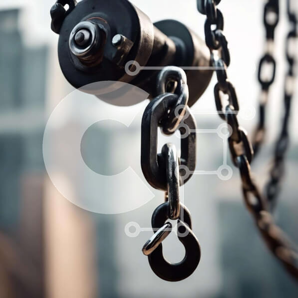 Intra Συλλεκτικό Ξύλινο Παζλ Plywood 4mm – Κοντινό πλάνο αλυσίδων με τον ορίζοντα της πόλης στο παρασκήνιο Σε Ξύλινο Κουτί – Διαστάσεις Puzzle: 10×10 cm – 25 κομμάτια