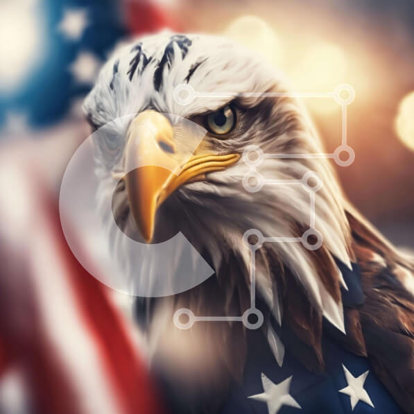 Intra Συλλεκτικό Ξύλινο Παζλ Plywood 4mm – Κοντινό πλάνο ενός αετού με αμερικανική σημαία Σε Ξύλινο Κουτί – Διαστάσεις: 10×10 cm – 25 κομμάτια