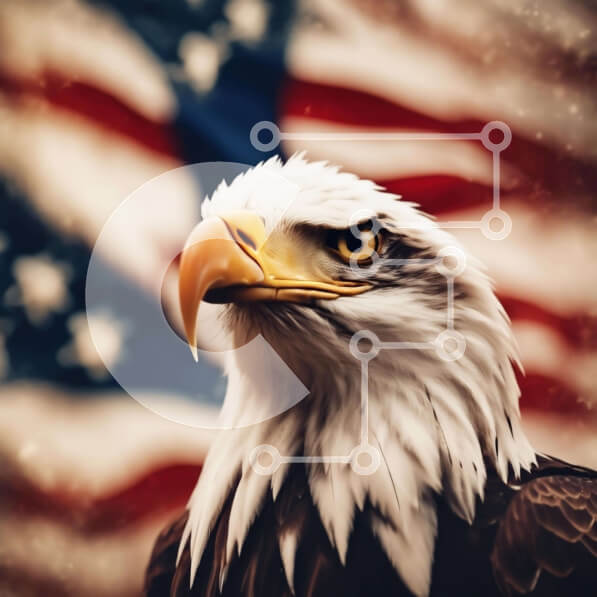 Intra Συλλεκτικό Ξύλινο Παζλ Plywood 4mm – Κοντινό πλάνο του αετού μπροστά από την αμερικανική σημαία Σε Ξύλινο Κουτί – Διαστάσεις: 10×10 cm – 25 κομμάτια