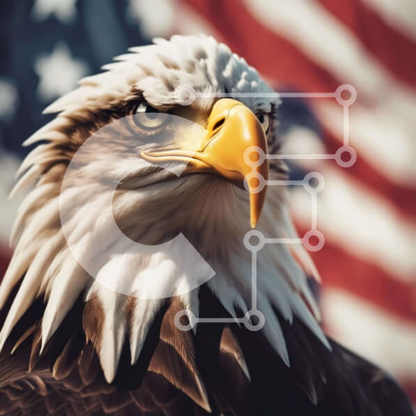 Intra Συλλεκτικό Ξύλινο Παζλ Plywood 4mm – Κοντινό πλάνο φαλακρός αετός με αμερικανική σημαία Σε Ξύλινο Κουτί – Διαστάσεις: 10×10 cm – 25 κομμάτια