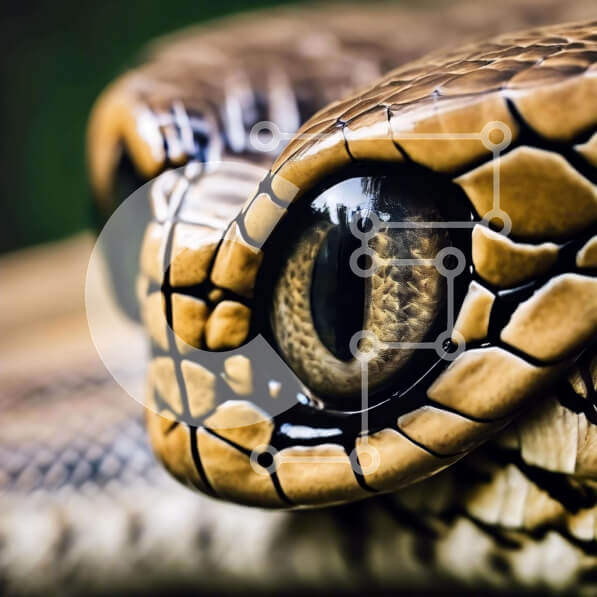 Intra Συλλεκτικό Ξύλινο Παζλ Plywood 4mm – Κοντινό πλάνο του προσώπου του φιδιού με τα μάτια ανοιχτά Σε Ξύλινο Κουτί – Διαστάσεις: 10×10 cm – 25 κομμάτια