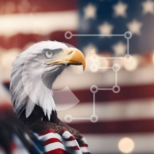 Intra Συλλεκτικό Ξύλινο Παζλ Plywood 4mm – Κοντινό πλάνο φαλακρός αετός με αμερικανική σημαία Σε Ξύλινο Κουτί – Διαστάσεις: 10×10 cm – 25 κομμάτια