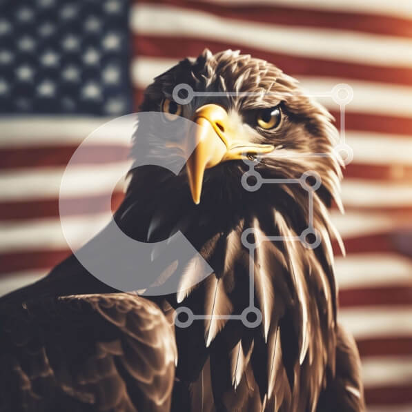 Intra Συλλεκτικό Ξύλινο Παζλ Plywood 4mm – Κοντινό πλάνο του αετού με την αμερικανική σημαία Σε Ξύλινο Κουτί – Διαστάσεις: 10×10 cm – 25 κομμάτια