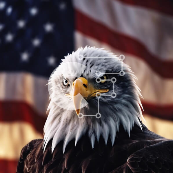 Intra Συλλεκτικό Ξύλινο Παζλ Plywood 4mm – Κοντινό πλάνο αετού και αμερικανικής σημαίας Σε Ξύλινο Κουτί – Διαστάσεις: 10×10 cm – 25 κομμάτια