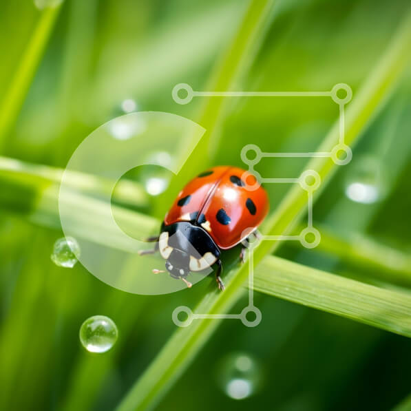 Intra Συλλεκτικό Ξύλινο Παζλ Plywood 4mm – Κοντινό πλάνο μιας πασχαλίτσας στο γρασίδι με σταγονίδια νερού Σε Ξύλινο Κουτί – Διαστάσεις: 10×10 cm – 25 κομμάτια