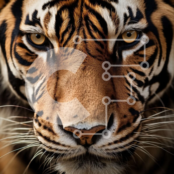 Intra Συλλεκτικό Ξύλινο Παζλ Plywood 4mm – Κοντινό πλάνο του προσώπου μιας τίγρης με άγρια ​​έκφραση Σε Ξύλινο Κουτί – Διαστάσεις: 10×10 cm – 25 κομμάτια