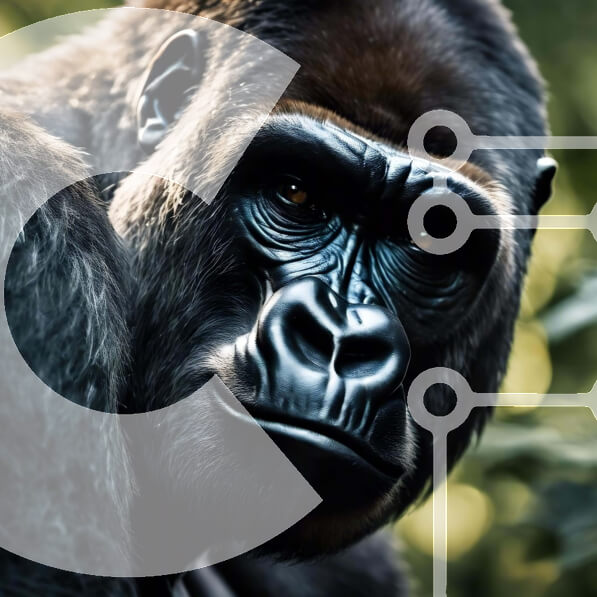 Intra Συλλεκτικό Ξύλινο Παζλ Plywood 4mm – Κοντινό πλάνο ενός γορίλα που κοιτάζει επίμονα την κάμερα Σε Ξύλινο Κουτί – Διαστάσεις: 10×10 cm – 25 κομμάτια