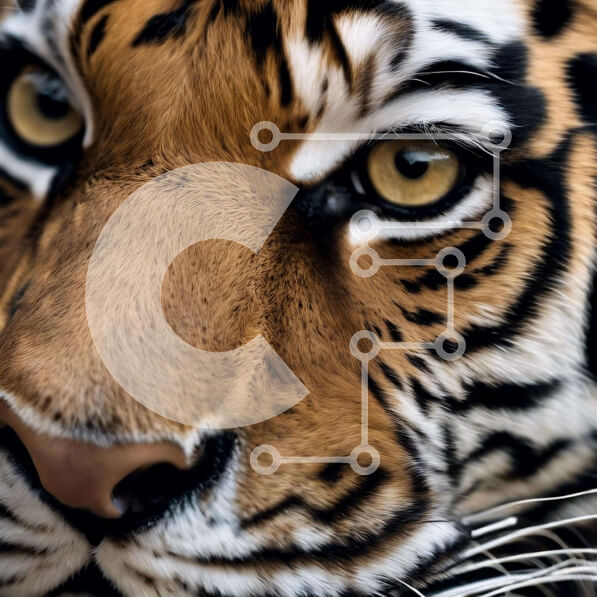 Intra Συλλεκτικό Ξύλινο Παζλ Plywood 4mm – Κοντινό πλάνο του προσώπου μιας τίγρης με φωτεινά, ανοιχτά μάτια Σε Ξύλινο Κουτί – Διαστάσεις: 10×10 cm – 25 κομμάτια