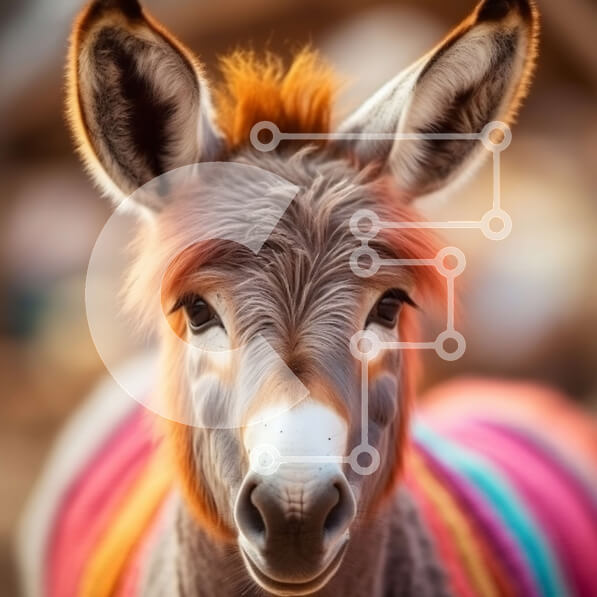 Intra Συλλεκτικό Ξύλινο Παζλ Plywood 4mm – Κοντινό πλάνο ενός πολύχρωμου γαϊδάρου Σε Ξύλινο Κουτί – Διαστάσεις: 10×10 cm – 25 κομμάτια