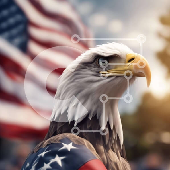 Intra Συλλεκτικό Ξύλινο Παζλ Plywood 4mm – Κοντινό πλάνο ενός αετού με αμερικανική σημαία Σε Ξύλινο Κουτί – Διαστάσεις: 10×10 cm – 25 κομμάτια