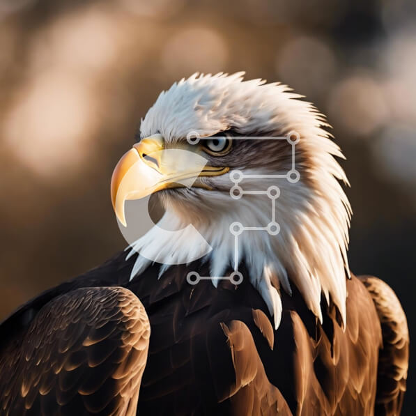 Intra Συλλεκτικό Ξύλινο Παζλ Plywood 4mm – Κοντινό πλάνο του Curious Eagle με το ράμφος ανοιχτό Σε Ξύλινο Κουτί – Διαστάσεις: 10×10 cm – 25 κομμάτια