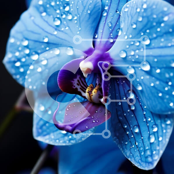 Intra Συλλεκτικό Ξύλινο Παζλ Plywood 4mm – Κοντινό πλάνο μιας μπλε ορχιδέας με σταγονίδια νερού Σε Ξύλινο Κουτί – Διαστάσεις: 10×10 cm – 25 κομμάτια