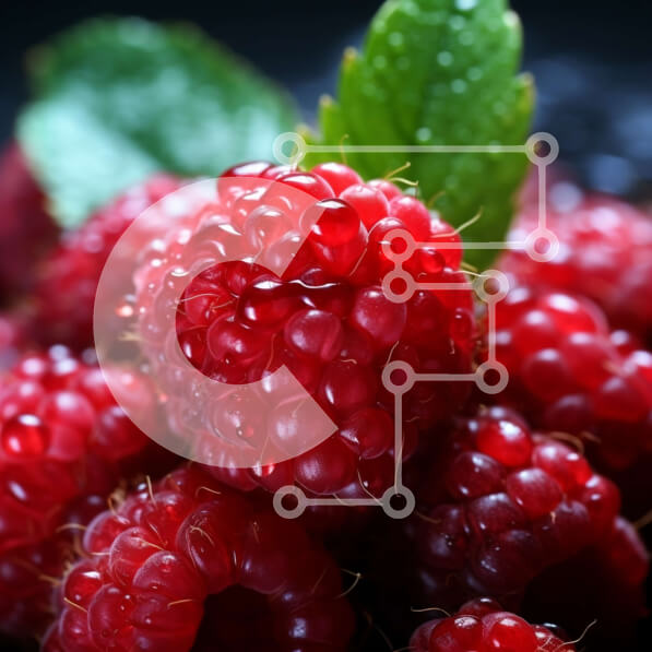 Intra Συλλεκτικό Ξύλινο Παζλ Plywood 4mm – Κοντινό πλάνο φρέσκων κόκκινων σμέουρων με σταγονίδια δροσιάς Σε Ξύλινο Κουτί – Διαστάσεις: 10×10 cm – 25 κομμάτια