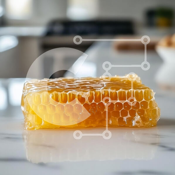 Intra Συλλεκτικό Ξύλινο Παζλ Plywood 4mm – Κοντινό πλάνο της κηρήθρας σε μαρμάρινο πάγκο Σε Ξύλινο Κουτί – Διαστάσεις: 10×10 cm – 25 κομμάτια