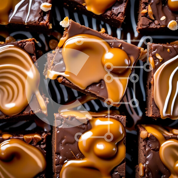 Intra Συλλεκτικό Ξύλινο Παζλ Plywood 4mm – Κοντινό πλάνο του Decadent Brownies σοκολάτας με σάλτσα καραμέλας και ξηρούς καρπούς Σε Ξύλινο Κουτί – Διαστάσεις: 10×10 cm – 25 κομμάτια