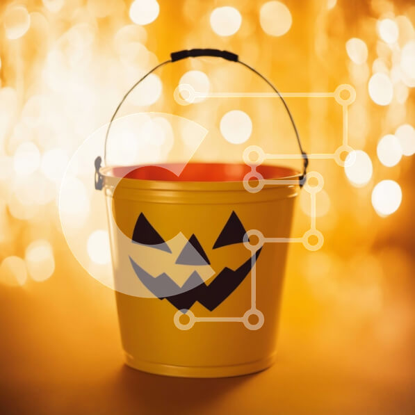 Intra Συλλεκτικό Ξύλινο Παζλ Plywood 4mm – Κουβάς κολοκύθας Halloween με πολύχρωμα φώτα Bokeh Σε Ξύλινο Κουτί – Διαστάσεις Puzzle: 10×10 cm – 25 κομμάτια