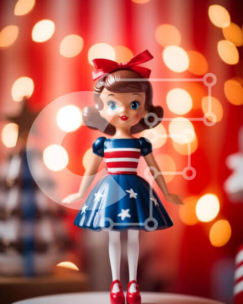 Intra Συλλεκτικό Ξύλινο Παζλ Plywood 4mm – Κούκλα παιχνιδιών με στολή με αμερικανική σημαία ανάμεσα σε χριστουγεννιάτικες διακοσμήσεις Σε Ξύλινο Κουτί – Διαστάσεις: 10×10 cm – 25 κομμάτια