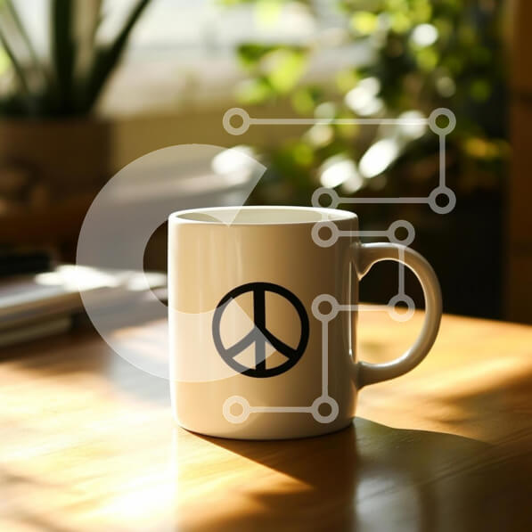 Intra Συλλεκτικό Ξύλινο Παζλ Plywood 4mm – Κούπα σύμβολο ειρήνης σε ξύλινο τραπέζι Σε Ξύλινο Κουτί – Διαστάσεις: 10×10 cm – 25 κομμάτια