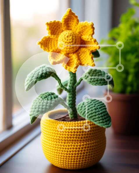 Intra Συλλεκτικό Ξύλινο Παζλ Plywood 4mm – Κροσέ ηλιοτρόπιο στο περβάζι παραθύρου Σε Ξύλινο Κουτί – Διαστάσεις: 10×10 cm – 25 κομμάτια