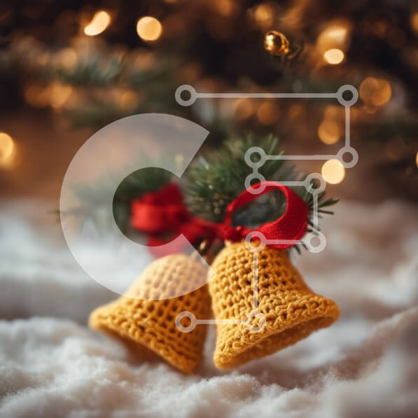 Intra Συλλεκτικό Ξύλινο Παζλ Plywood 4mm – Κροσέ καμπάνες που κρέμονται από το χριστουγεννιάτικο δέντρο στο χιόνι Σε Ξύλινο Κουτί – Διαστάσεις: 10×10 cm – 25 κομμάτια