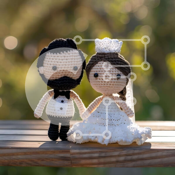 Intra Συλλεκτικό Ξύλινο Παζλ Plywood 4mm – Κροσέ νύφη και γαμπρός σε ξύλινο πάγκο Σε Ξύλινο Κουτί – Διαστάσεις Puzzle: 10×10 cm – 25 κομμάτια