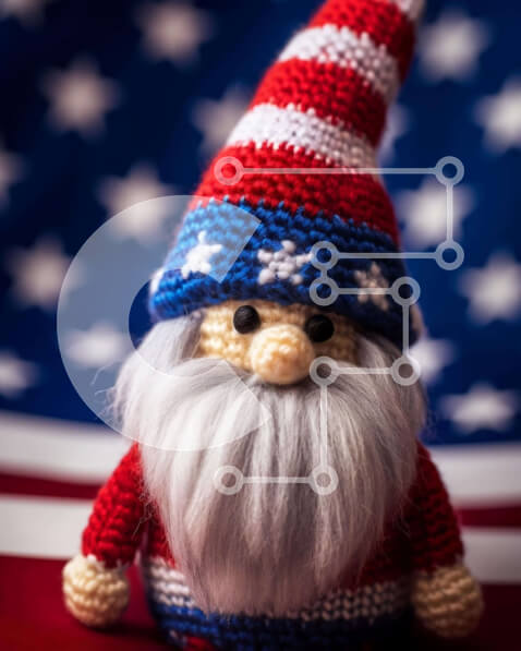 Intra Συλλεκτικό Ξύλινο Παζλ Plywood 4mm – Κροσέ στοιχειό με πατριωτική ενδυμασία με φόντο την αμερικανική σημαία Σε Ξύλινο Κουτί – Διαστάσεις: 10×10 cm – 25 κομμάτια