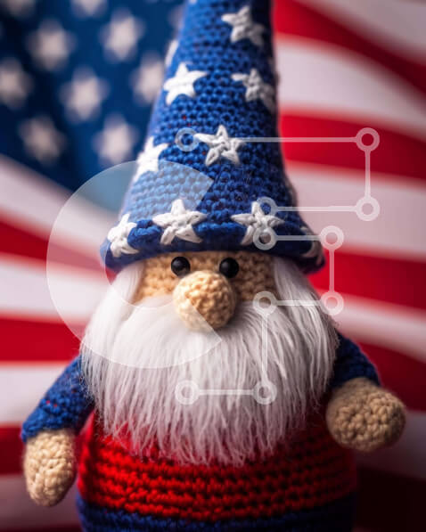 Intra Συλλεκτικό Ξύλινο Παζλ Plywood 4mm – Κροσέ gnome με αμερικανική σημαία Σε Ξύλινο Κουτί – Διαστάσεις: 10×10 cm – 25 κομμάτια